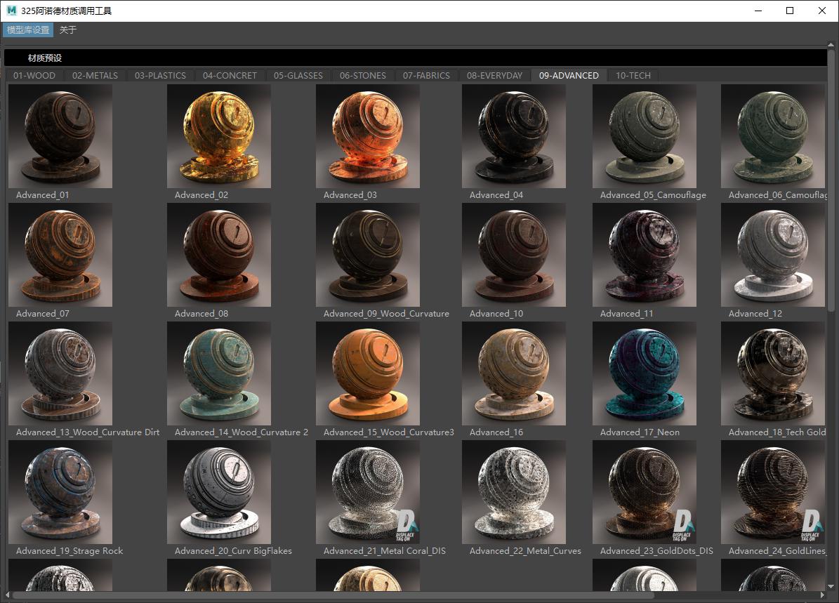 maya 325组阿诺德材质预设+调用脚本 for maya 2018-23 win系统版本
