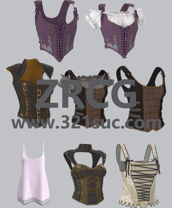 MD服装CLO素材--8款女性吊带背心紧身胸衣